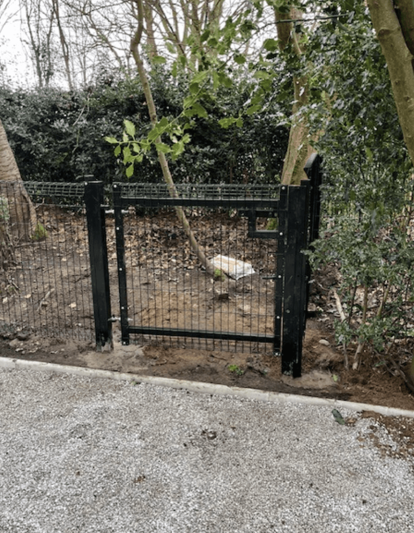 Black powder-coated steel mesh fencing was supplied and installed with new posts set to specification