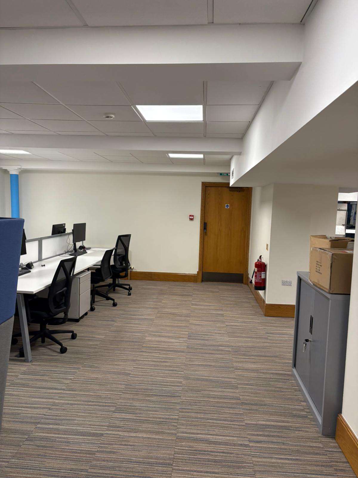 Interior Refresh: To give the office a ‘new-build’ feel without a full structural overhaul, we carried out professional internal decoration and a comprehensive industrial carpet clean.